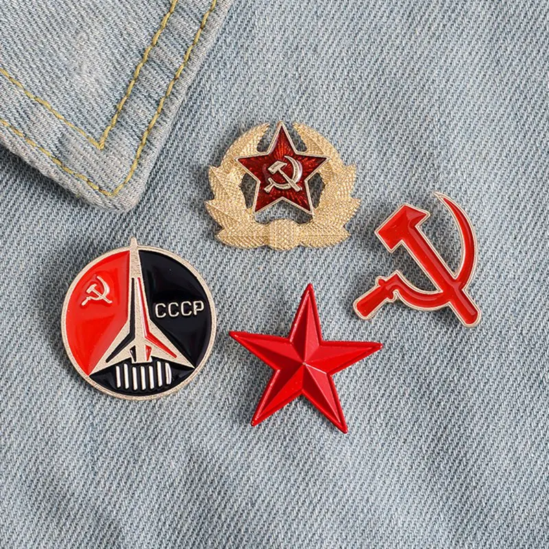 Эмалированная булавка в виде символа СССР, красная звезда, серп-молот, Советский Союз, броши в виде коккада, значок на лацкан, значок, коллекционный подарок