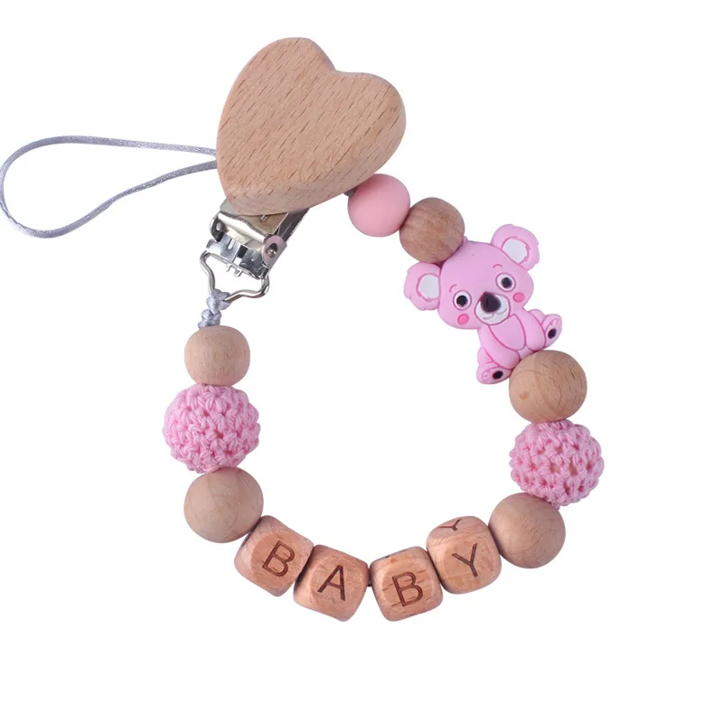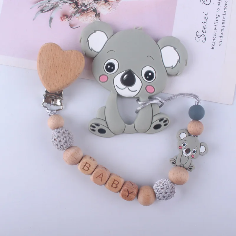Новинка, DIY мультяшный милый коала, силиконовый узор, деревянное персонализированное имя ребенка, Соска-пустышка, зажимы, цепочка, не содержит Бисфенол А, детский держатель, подарок