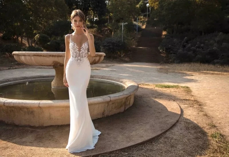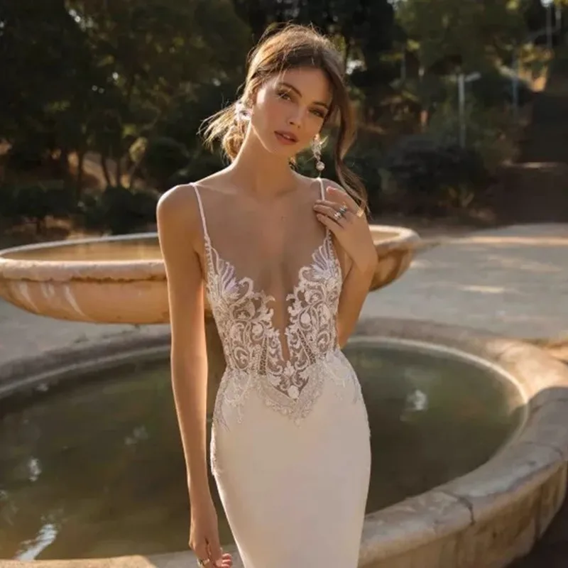 Сексуальные свадебные платья-русалки 2021, кружевное пляжное платье невесты на бретелях-спагетти с аппликацией, с открытой спиной