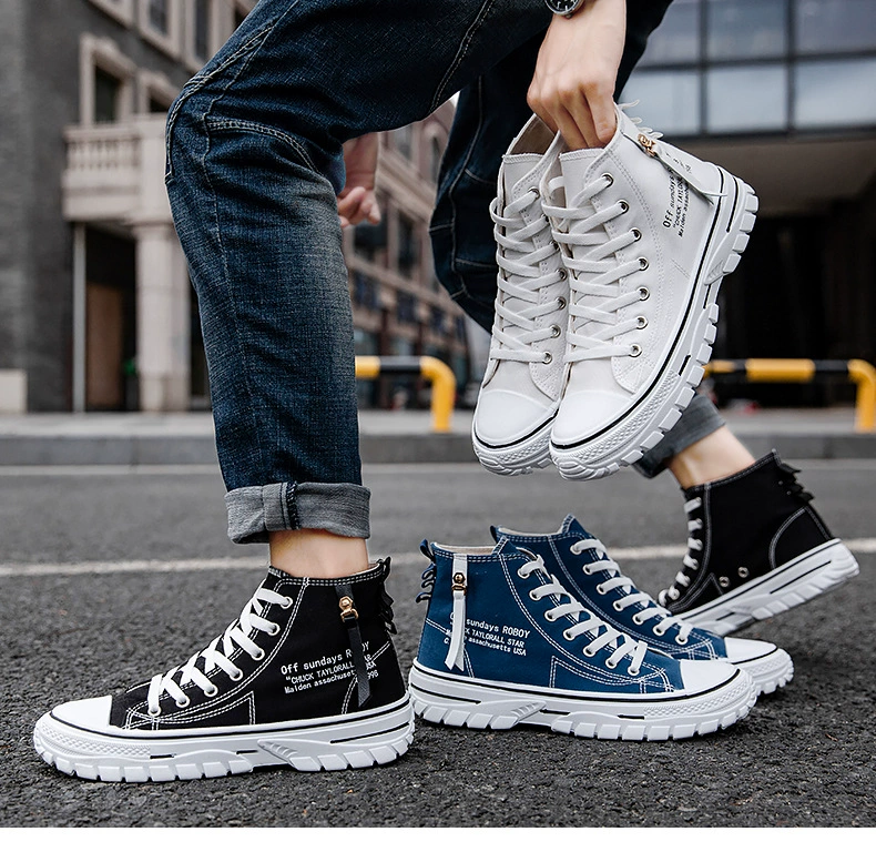 Парусиновая обувь с высоким берцем, Классическая мужская повседневн...