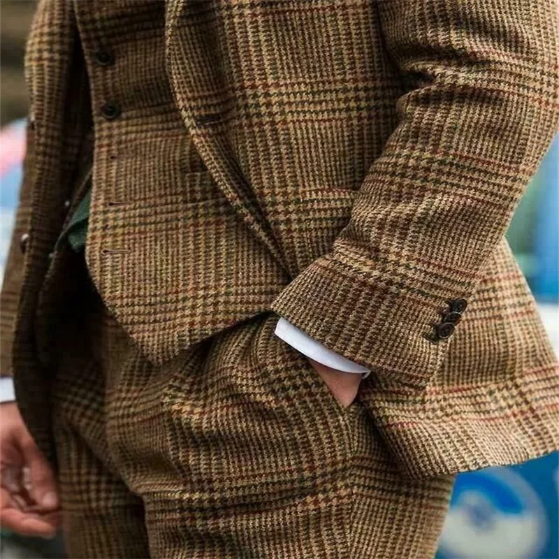 Модные мужские костюмы из 3 предметов, костюмы из твида под заказ, мужские шерстяные толстые современные блейзеры, пальто + брюки + жилет