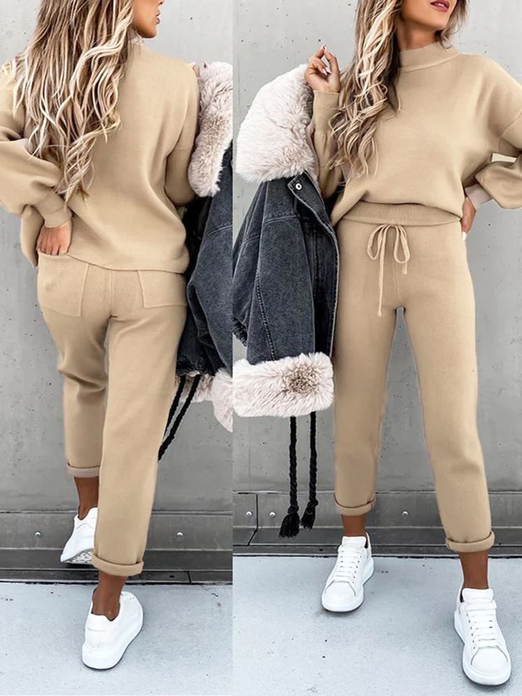 Женский свитер с карманами, повседневный однотонный костюм из двух ...