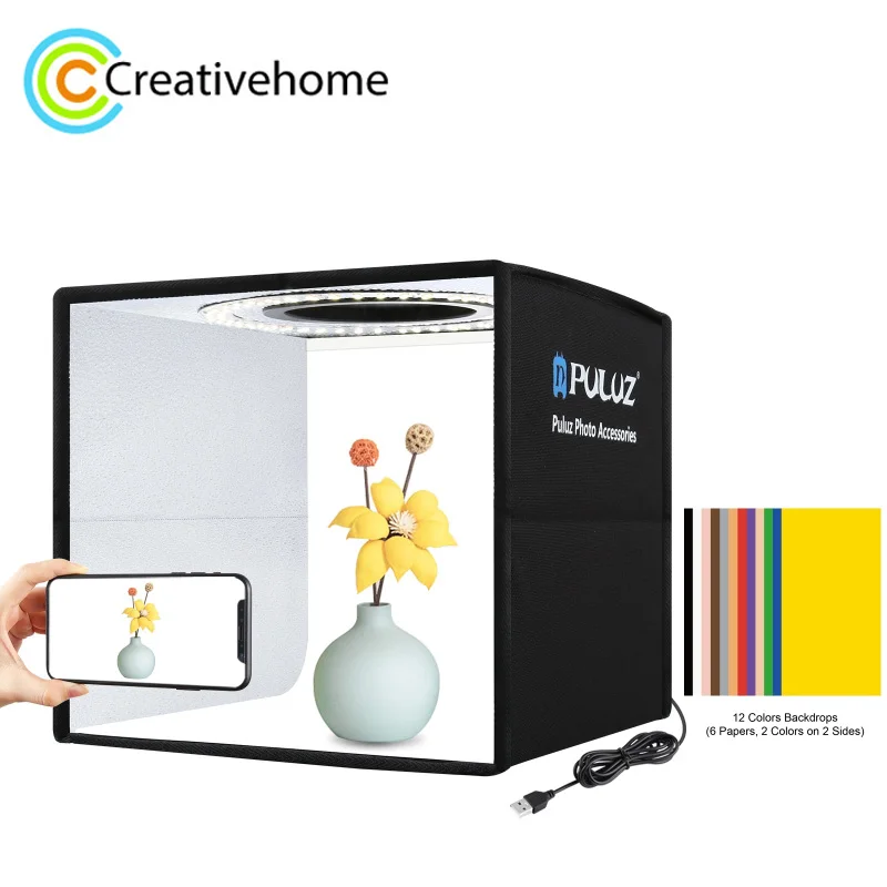 Портативный складной софтбокс PULUZ 25 см для фотостудии, со светодиодной подсветкой, кольцевой световой короб, Фотофон 12 цветов