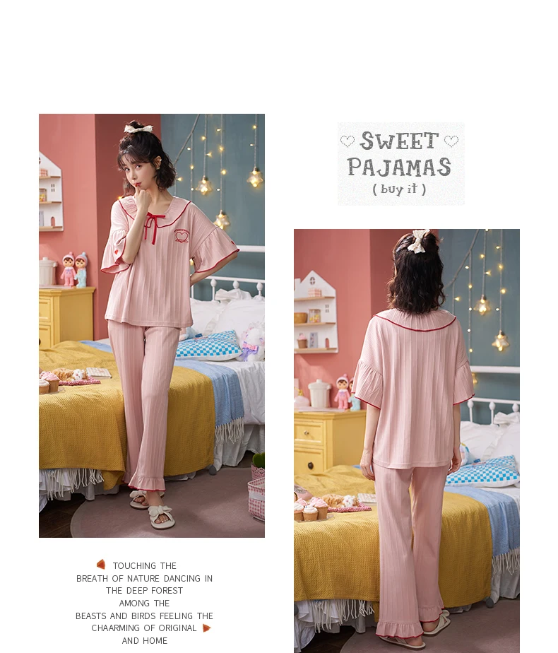 Новинка 2022 летний хлопковый женский пижамный комплект в стиле ленивой принцессы свободный топ с коротким рукавом и штаны Женская одежда для сна домашний спортивный костюм