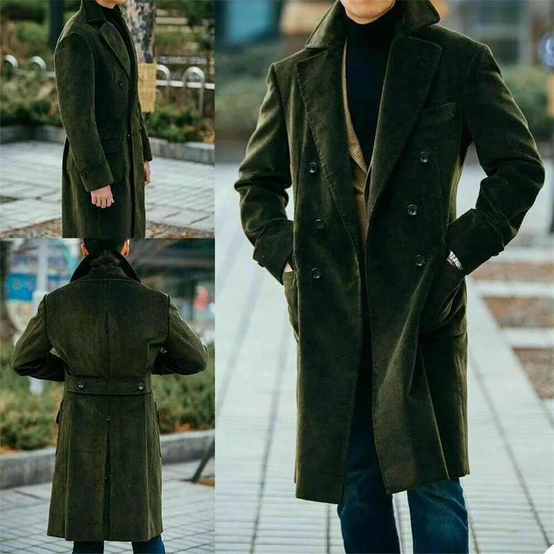 Темно-зеленые мужские костюмы из шерсти, толстая модная длинная мужская куртка на заказ, модная деловая куртка с лацканами, высокое качество