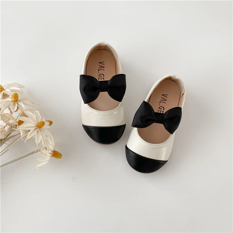 Туфли детские кожаные, демисезонные, с бабочками, белые, черные