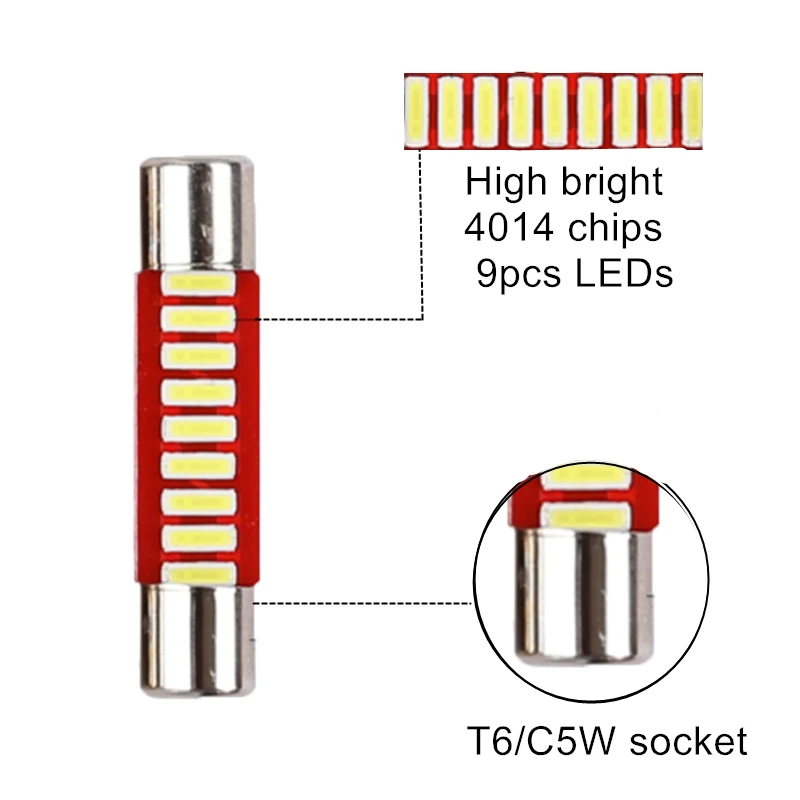 Яркие сменные светодиодные лампы 9-SMD 28 мм 6614 для автомобиля Peugeot 207 208 308 407 508 2008 3008