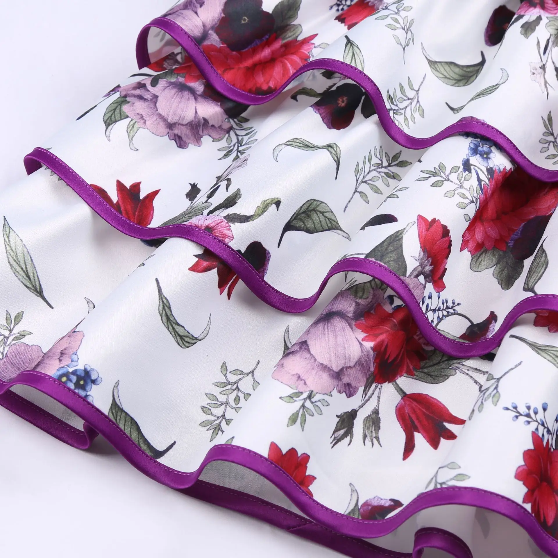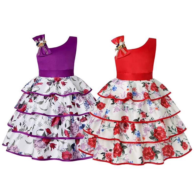 Детская одежда с цветочным принтом; Многослойное платье для От 3 до 8 лет для девочек на свадьбу, день рождения, вечерние платья принцессы, детский хлопковый костюм, одежда Vestidos