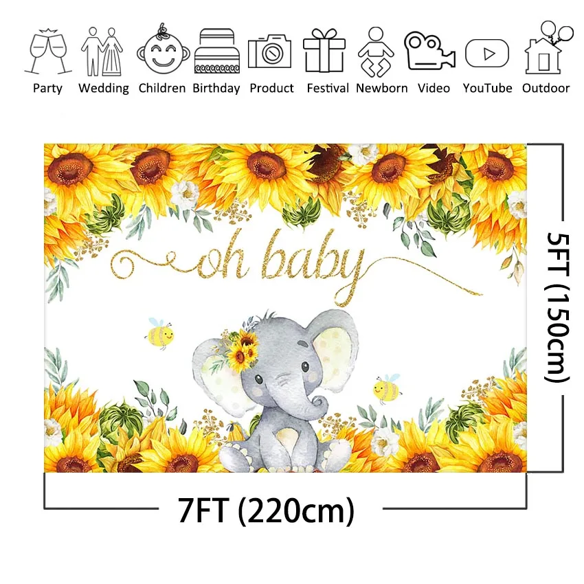 Mocsicka Oh Baby Elephant Backdrop для детского душа Подсолнух маленький арахис украшения на день рождения фон для фотосъемки
