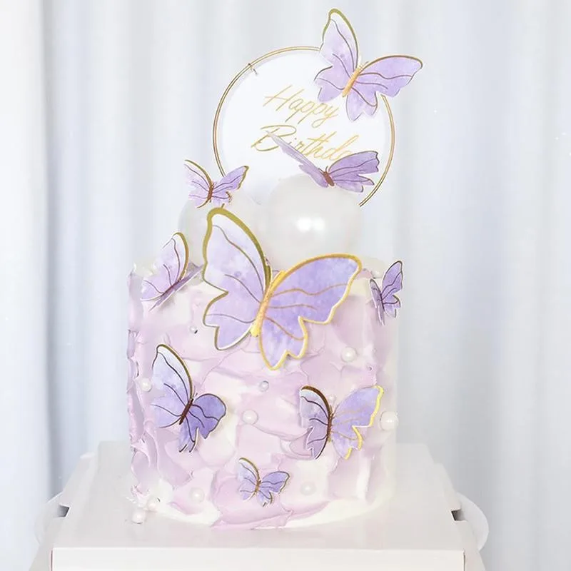 Украшение для торта, Бабочка, ручная работа, 10 шт.компл. Happy топперы для торта на день рождения, для свадьбы, дня рождения