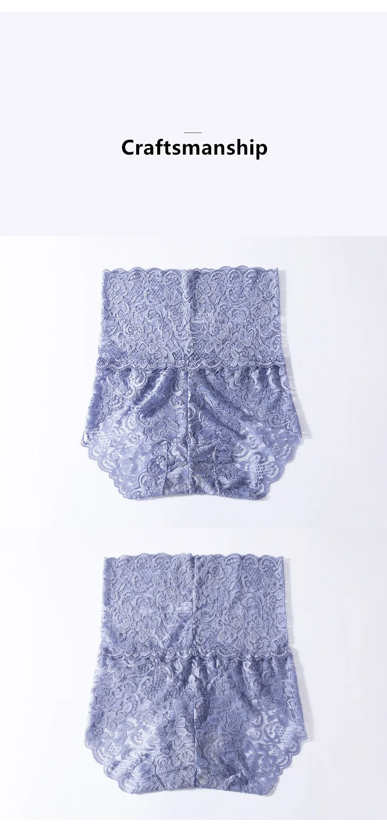 Трусики женские кружевные с завышенной талией, соблазнительные Бесшовные прозрачные брифы из чистого хлопка для ягодиц и живота, большие размеры