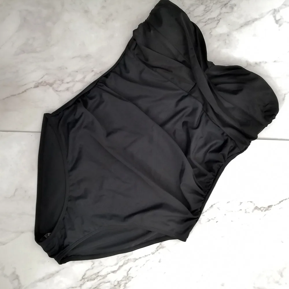 Черный купальник без бретелек, женский слитный купальник, пуш-ап, в...