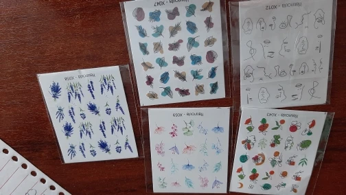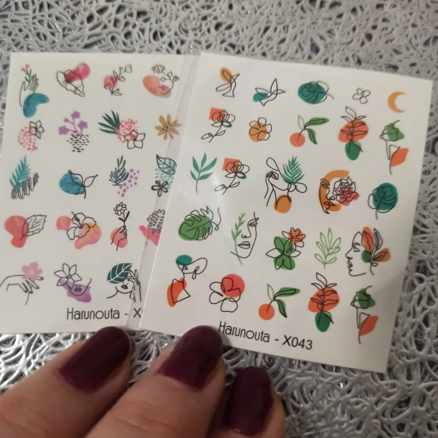 Очень довольна наклейками, понравились и мне, и моему мастеру. Много различных деталей, которые хорошо пропечатаны. Качество наклеек отличное! Нет ни одной складочки, при снятии белой бумаги наклейка немного склеилась (случайно), но также легко расклеилась. На ногтях не образовалось ни одной складки, после фиксации глянцевым топом также смотрятся нереально красиво. И нет самого главного минуса наклеек - они смотрятся как влитые. Просто в восторге, всем советую. Доставка очень быстрая, дней 10 примерно