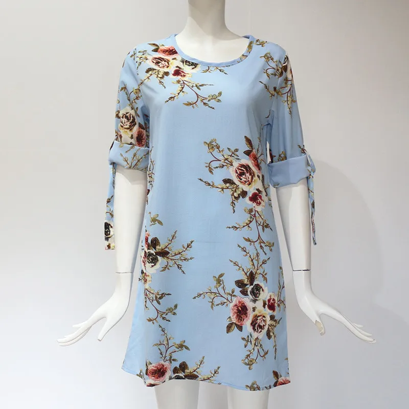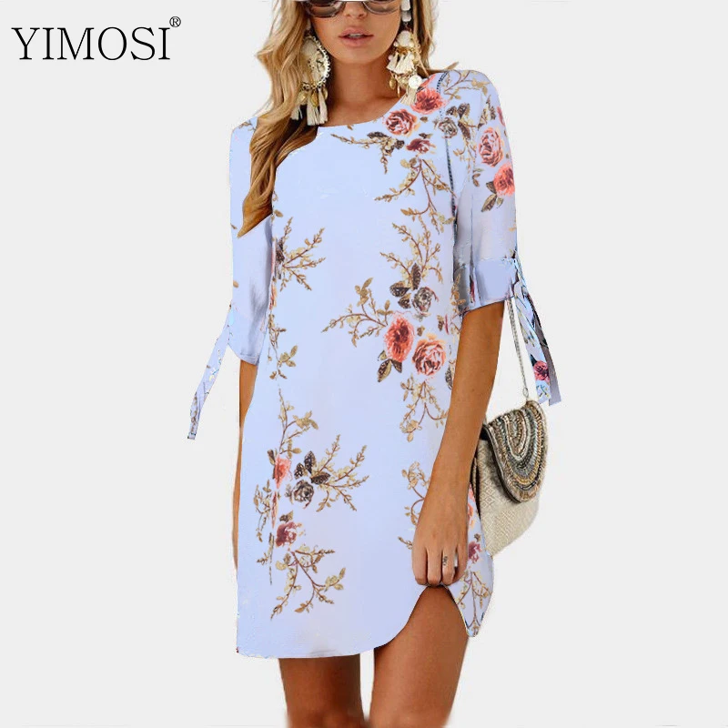 Женское шифоновое пляжное платье-туника с цветочным принтом, свободного покроя