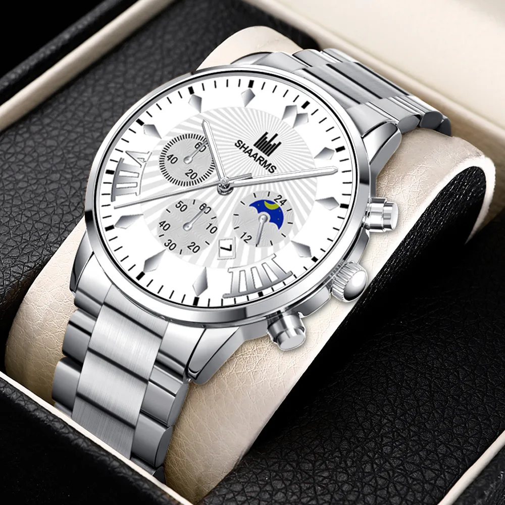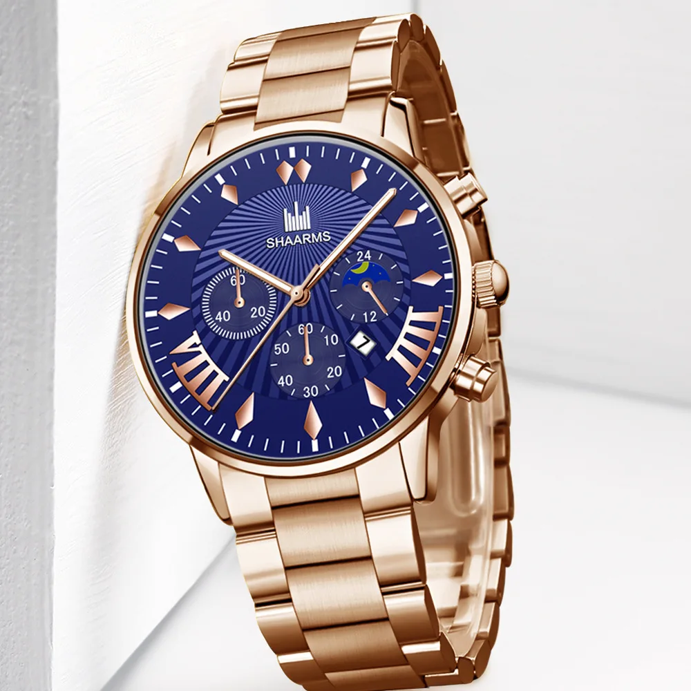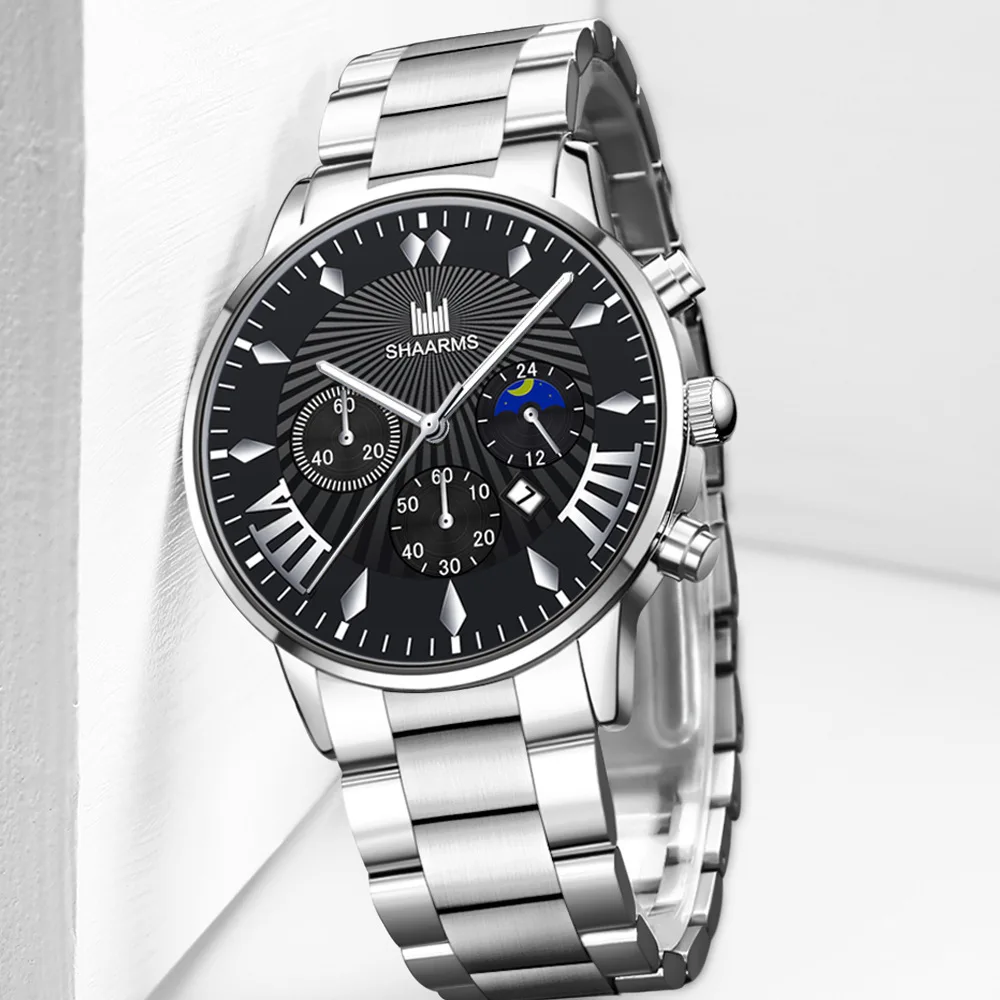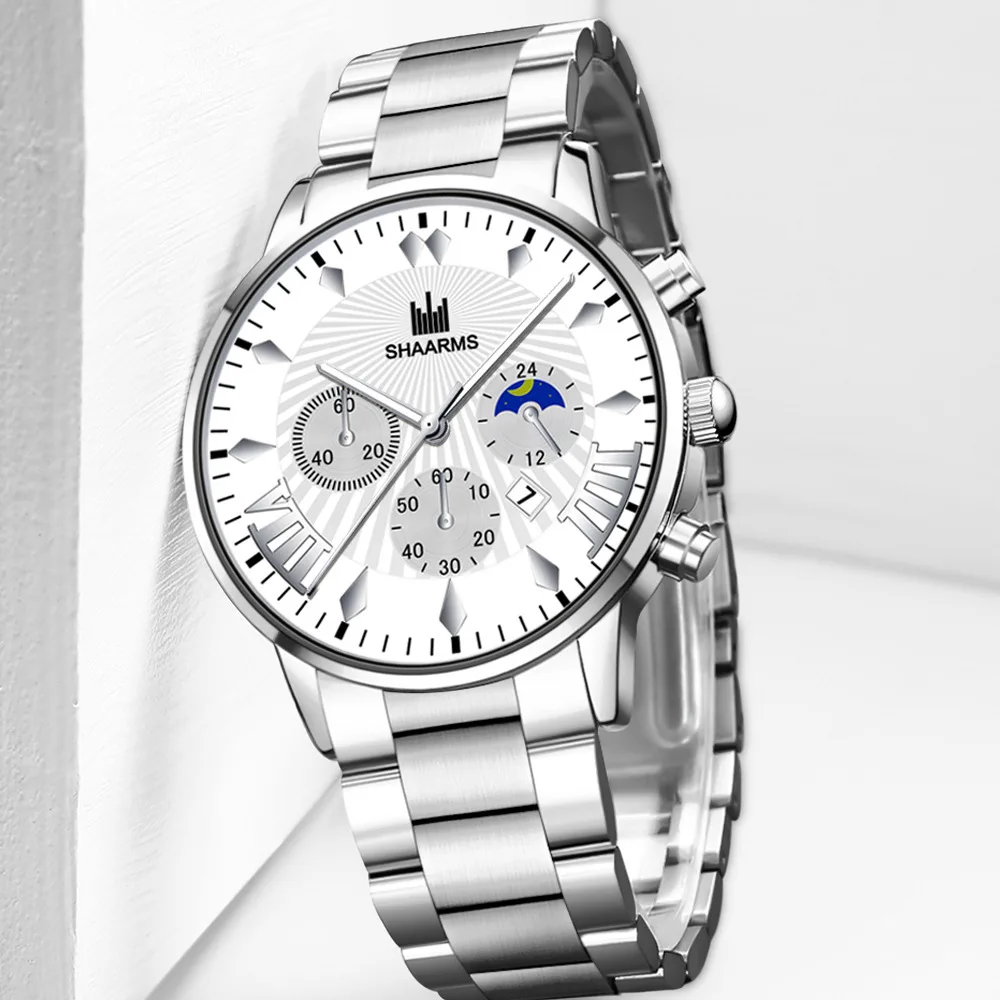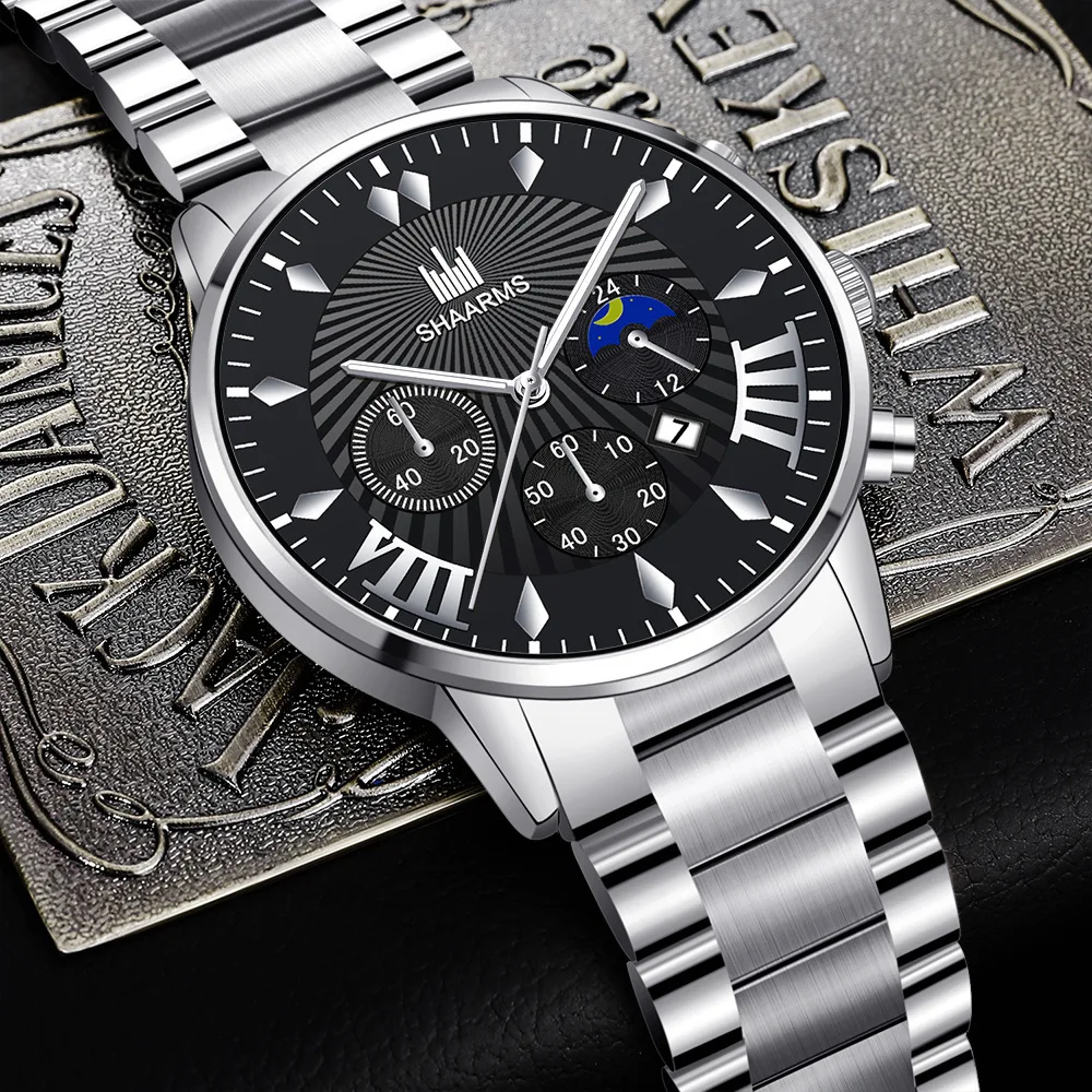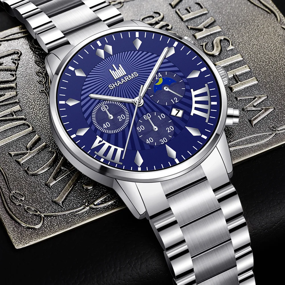 Новые модные мужские часы, элегантные мужские деловые кварцевые часы из нержавеющей стали, горячая распродажа