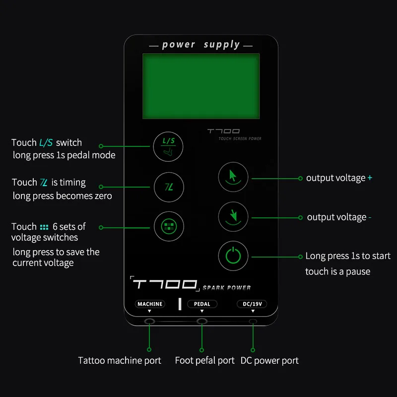 Блок питания для тату T700 с сенсорным экраном, интеллектуальная скамья, цифровой ЖК-дисплей, Двойные входы для макияжа, тату, зажатое оборудование