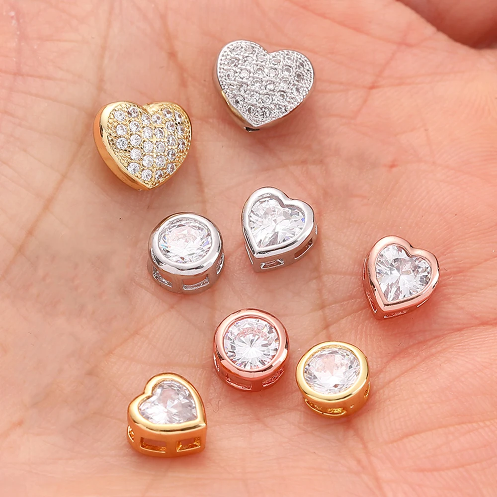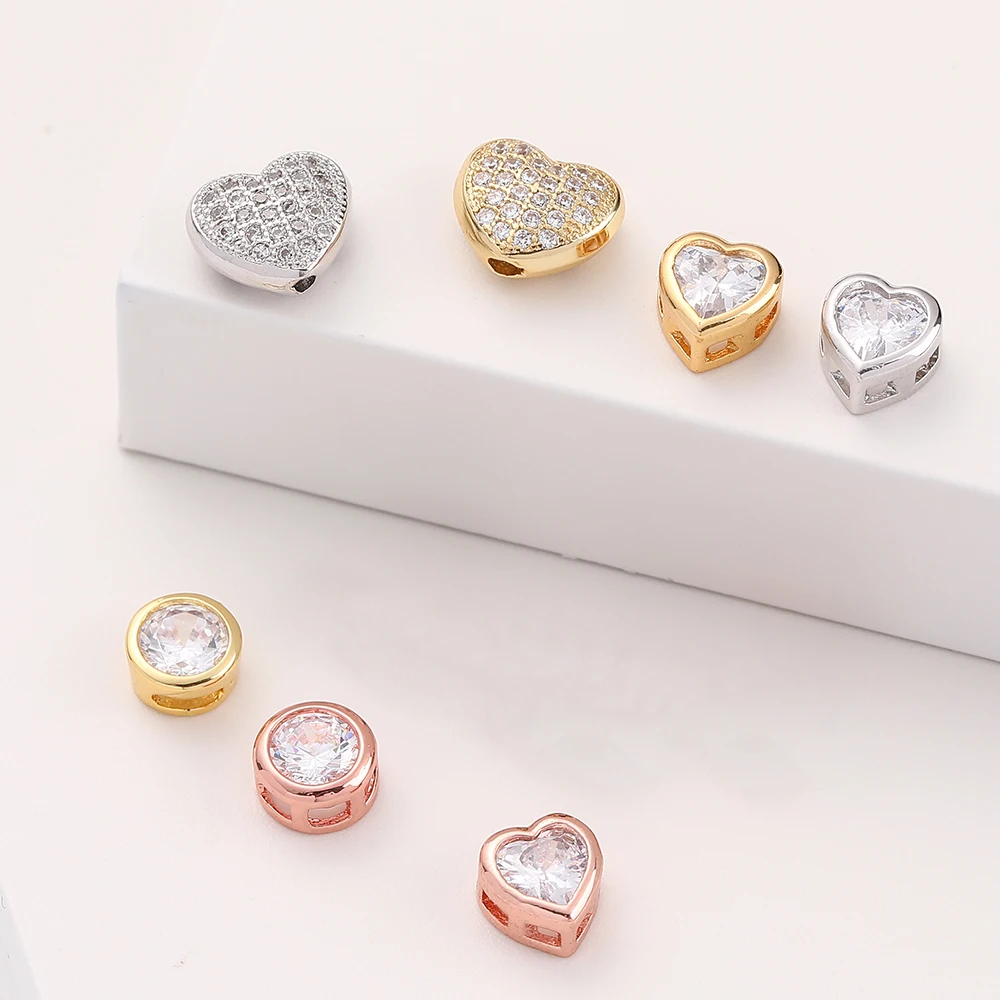 Бусины в форме сердца для изготовления ювелирных изделий, золотые бусины для браслетов сделай сам, медь, фианит, аксессуары, металлические бусины-шармы, оптовая продажа