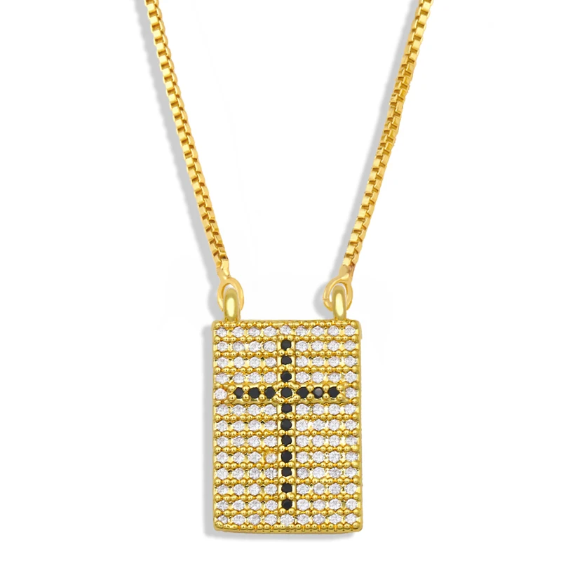 Ожерелье FLOLA с кулоном женское, золотая цепочка с квадратным кулоном, кубический цирконий, инкрустированный фианитом, Подарочная бижутерия, nket38
