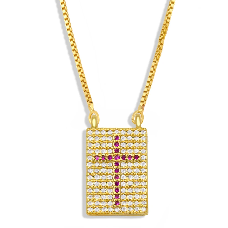 FLOLA Многоцветный хрустальный крест ожерелье для женщин золотое ож...