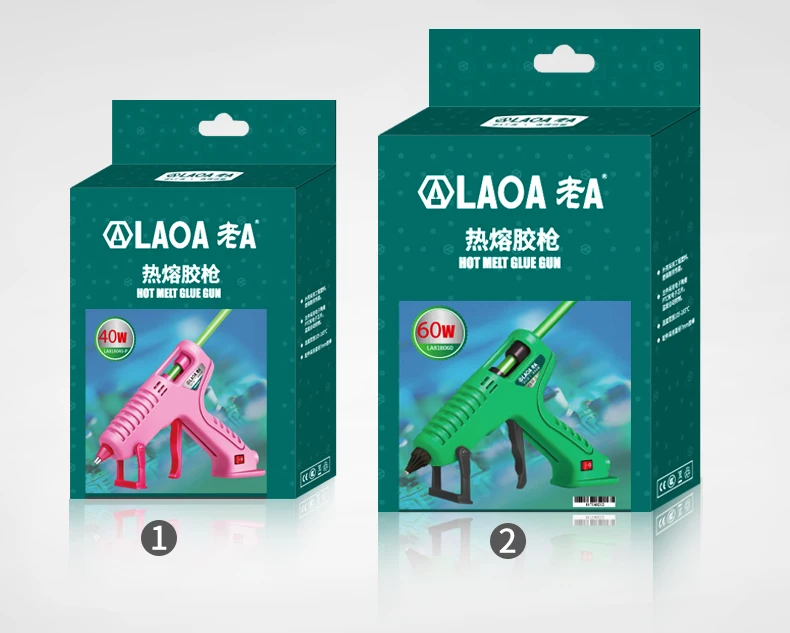 1. Клеевой пистолет 40 Вт с коробкой 280 г2. Клеевой пистолет 60/80/100 Вт с коробкой 350 г