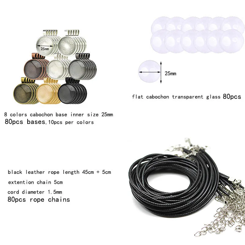 240 шт./компл./набор основы подвески 25 мм кабошон стекло камея с 50 см Черная кожа Веревка Цепи для ожерелья ручной работы DIY ювелирных изделий