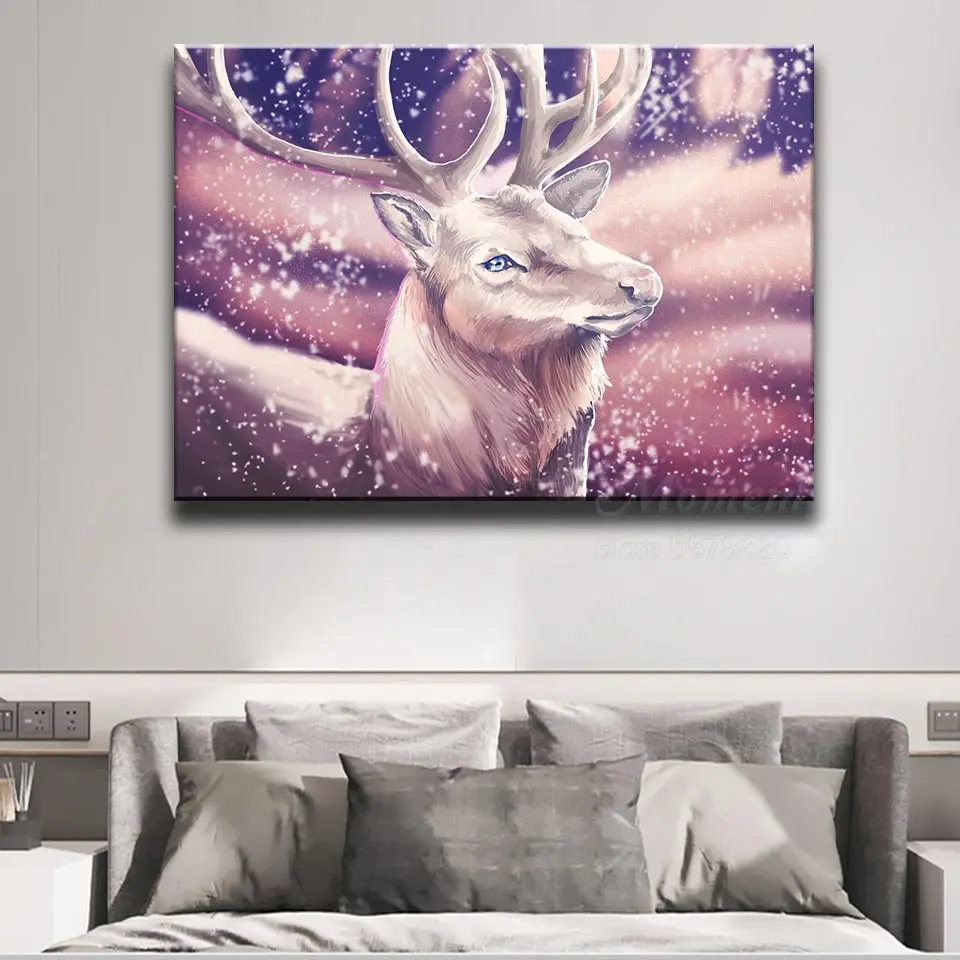 Когда-либо в настоящий момент зимние алмазов картина крестом красивая голова оленя Настенный декор на холсте мозаика набор для рукоделия с 5L1664