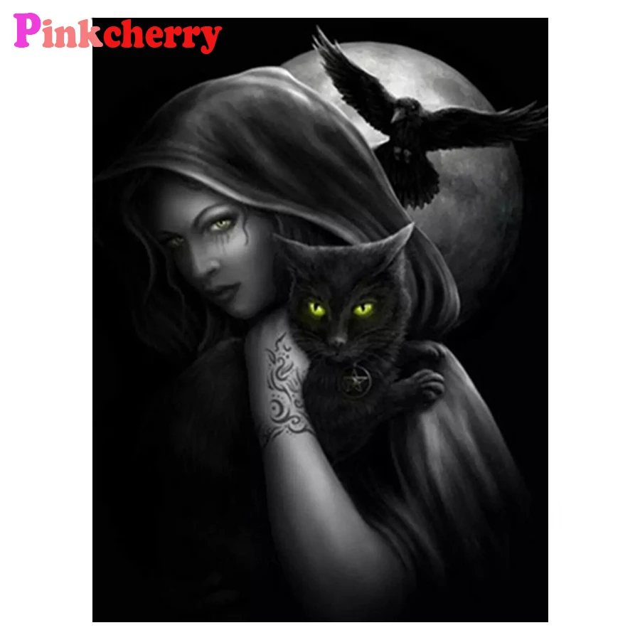 Алмазная мозаика 5D, картина из квадратных страз, красавица и кот, Алмазный вышитый ночной, вышивка крестом