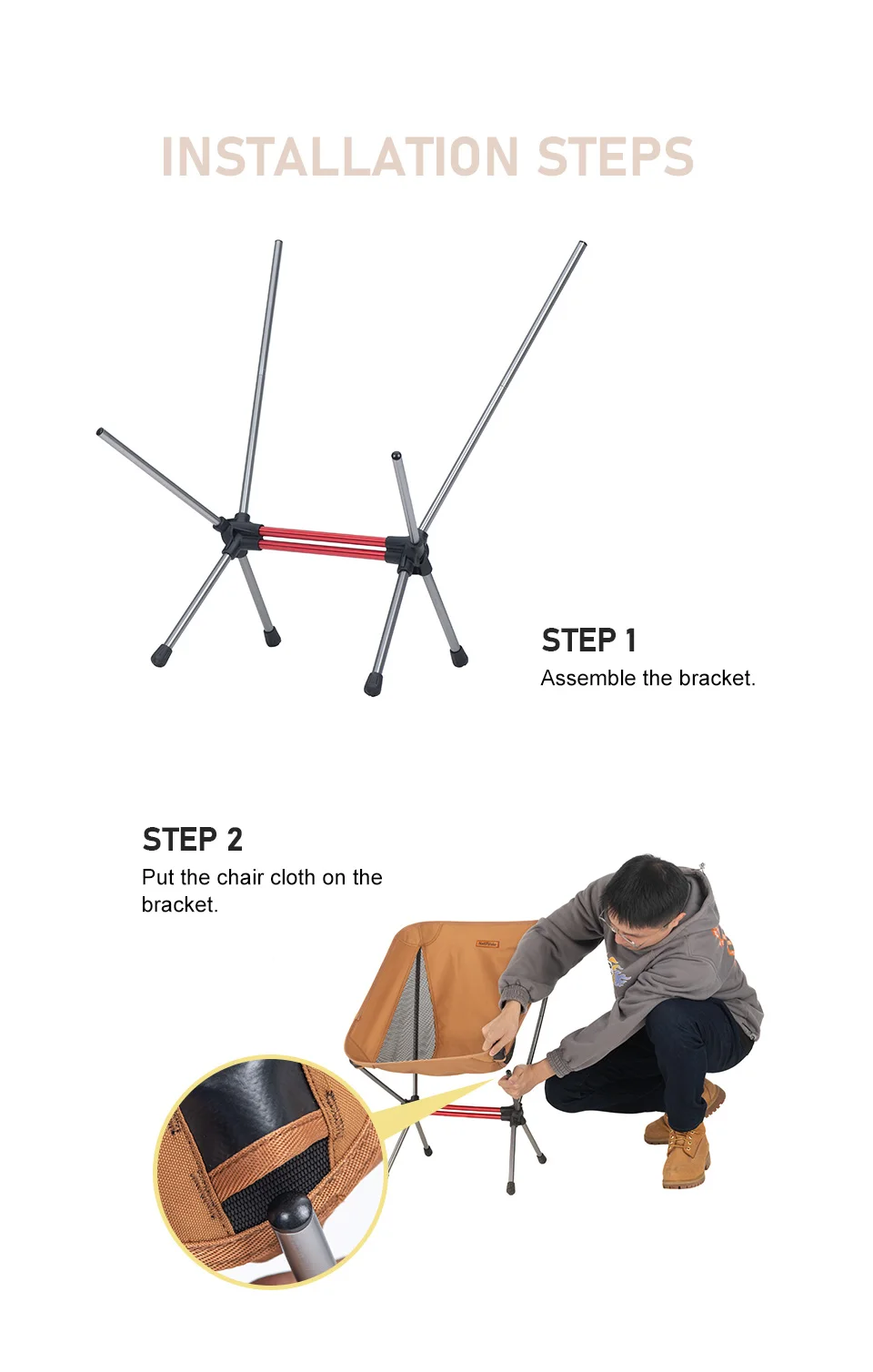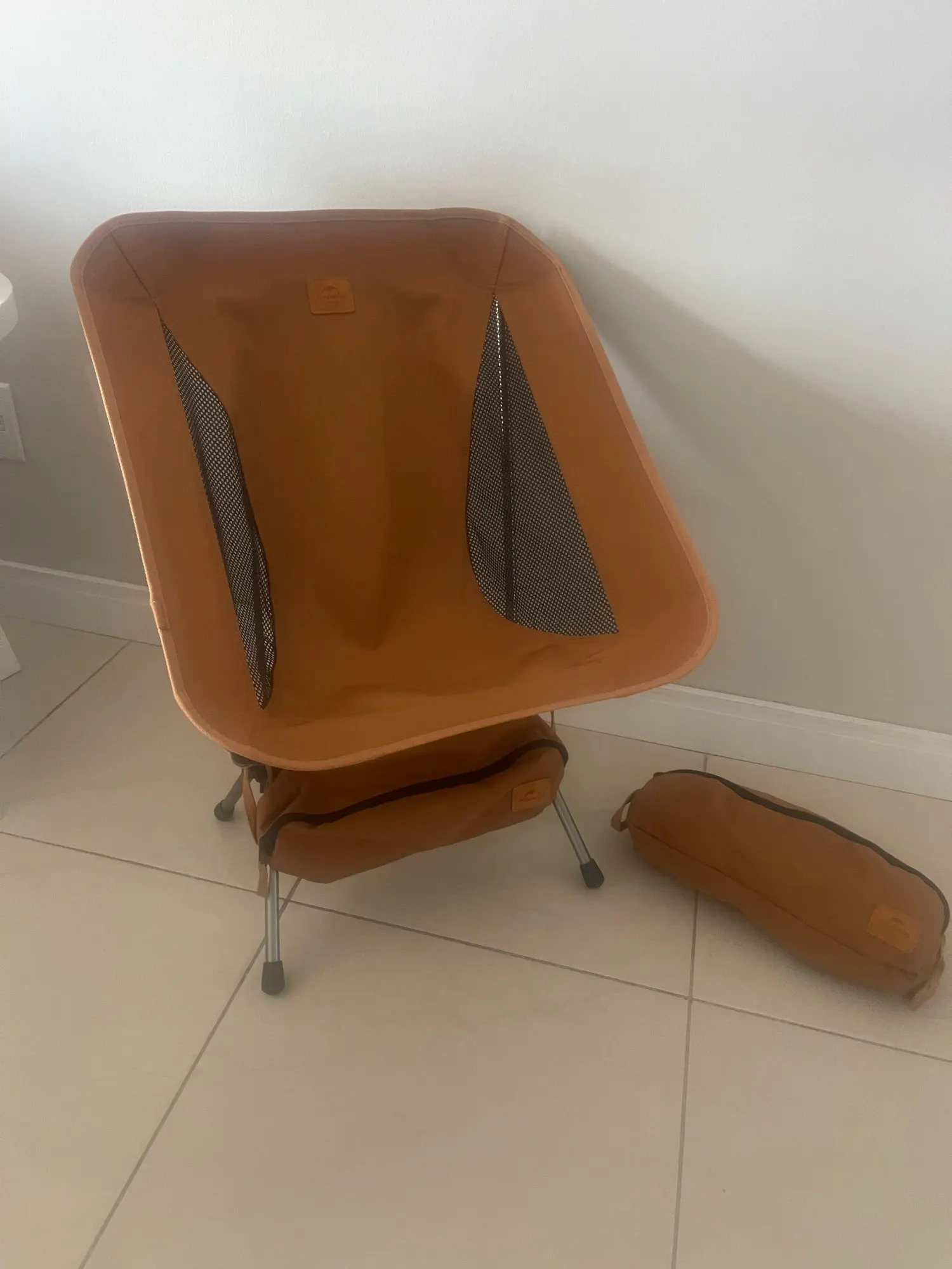 Брал для велопокатушек, качество материала, пошива, строчки все очень хорошее, каркас с виду очень надежный-время покажет, сборка простая, вес стула с чехлом 1,1кг, размеры в чехле приблизительно 37х16х13см. Стул удобный, посадка как в кресле, эффекта опрокидывания, неустойчивости нет, при моем весе 78, рост 181 очень комфортно, наверное, можно было брать меньший размер, был бы легче, но не критично