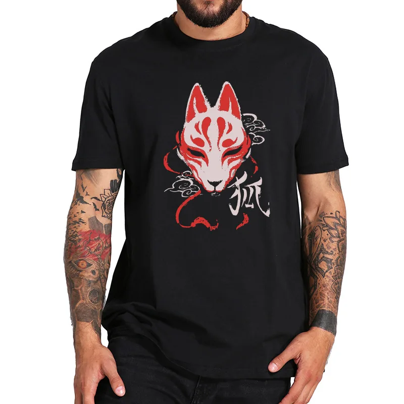 Футболка с принтом в виде японской лисы, китайских демонов, европейский размер, 100% хлопок, подарки