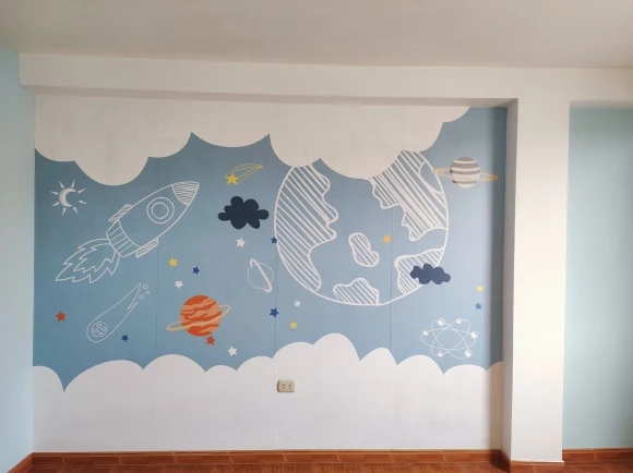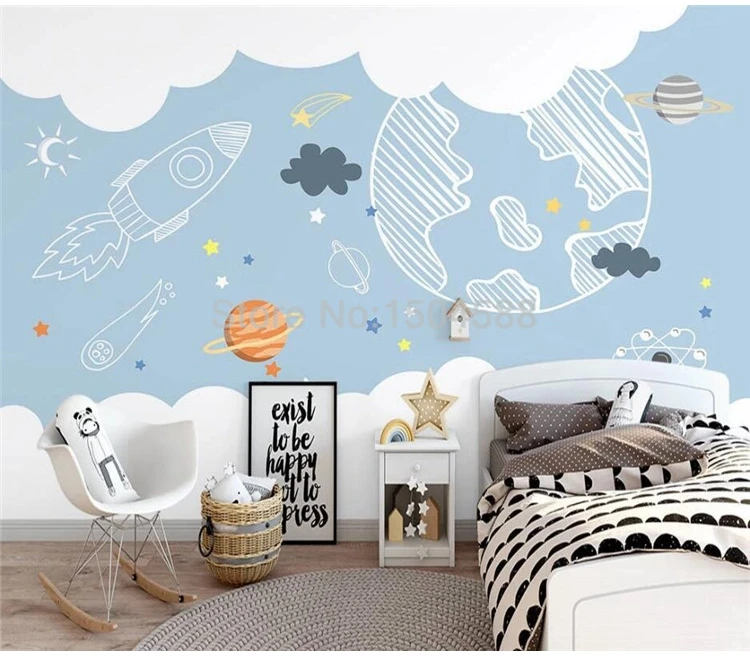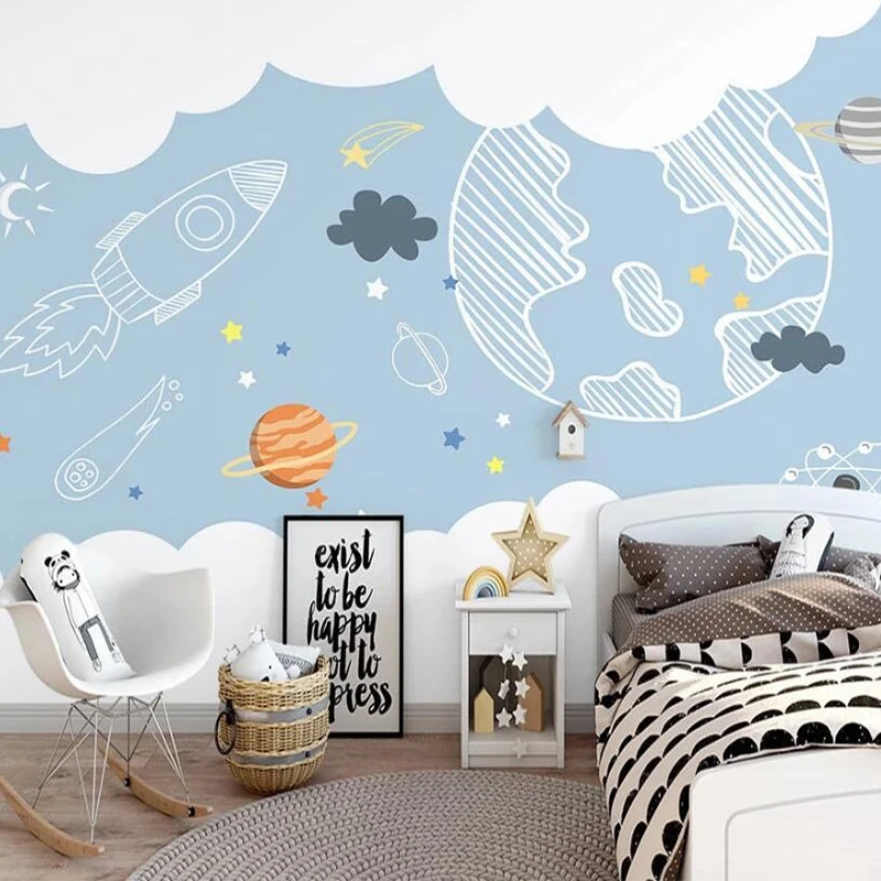 Настенные 3D росписи на заказ, в скандинавском стиле, ручная роспись, минималистичный мультяшный космос, планета, детская комната, фоновые настенные панно-обои