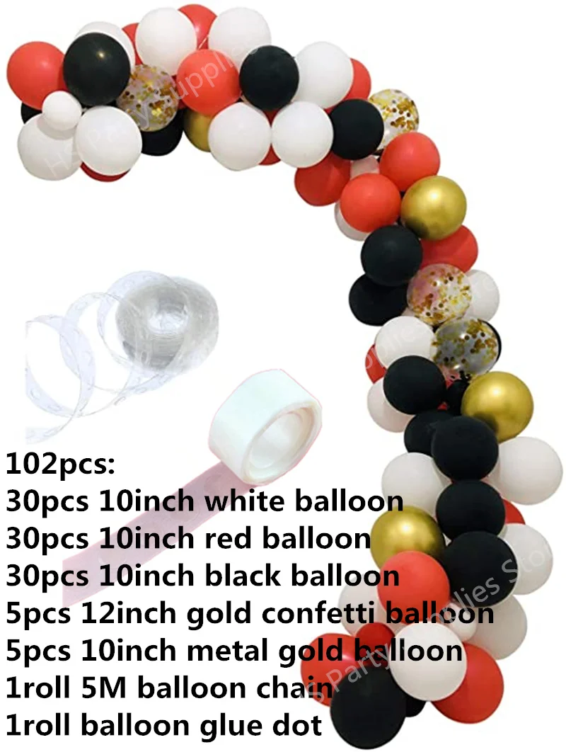 102 шт., белый, черный, красный латексный шар, Золотое конфетти, металлический золотой венок, набор воздушных шаров, арочный венок, украшение для свадьбы, дня рождения