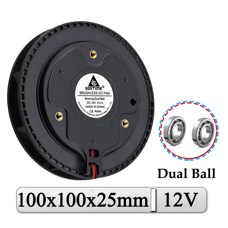 2 шт. Gdstime вентилятор постоянного тока 12 В 100 мм 100x100x25 мм новый центробежный Турбовентилятор 10 см 100 мм x 25 мм двойной шариковый вентилятор охлаждения