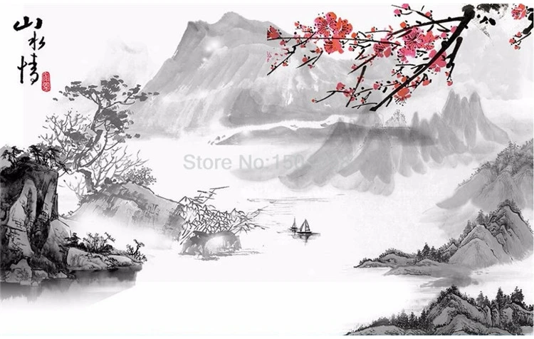 Настенные обои на заказ в китайском стиле, пейзаж, чернильная живопись, фреска, гостиная, телевизор, диван, спальня, кабинет, декор для стен