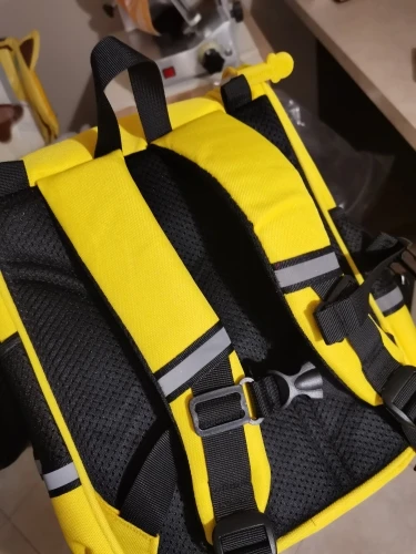 Отличный рюкзак. Помещается папка А4. Внутри основной отдел и два кармашка. Сбоку и на лямках светоотражатели. В боковой карман входит бутылочка воды объёмом 0,33 л. Ребёнок доволен. В подарок брелок. С продавцом не общались, трек номер отслеживался, доставили за 2 недели, забирала на почте.