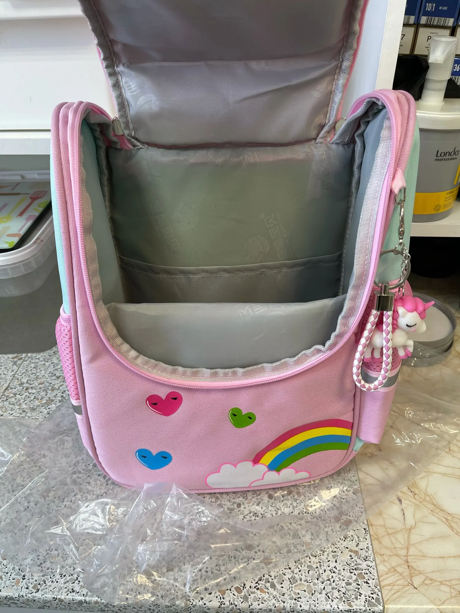 Рюкзак как на фото, качественный, плотный, вместительный, без запаха, был упакован в 3 пакета, украшен красивым брелком в виде единорога, до Хабаровска дошёл за 2 недели, продавец очень быстро отправил заказ, рекомендую.