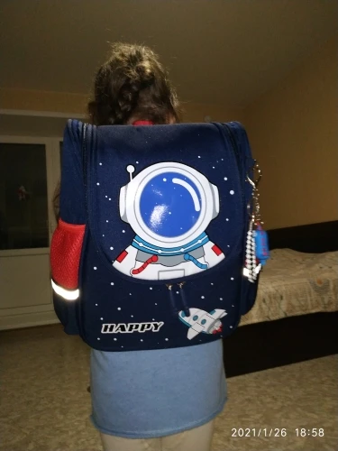 Товар получила, очень удобный анатомически, усиленная спинка, в тоже время она мягкая и сетчатая. Удобные лямки, легко регулируются. замок очень легко открывается. Сбоку кармашки. Ещё есть очень прикольный брелок- динозавр, но он здесь к космической тематике совсем не в тему. Подошла бы какая-нибудь ракета. А в целом, очень хороший рюкзачок для дошкольника или начальных классов. Рекомендую