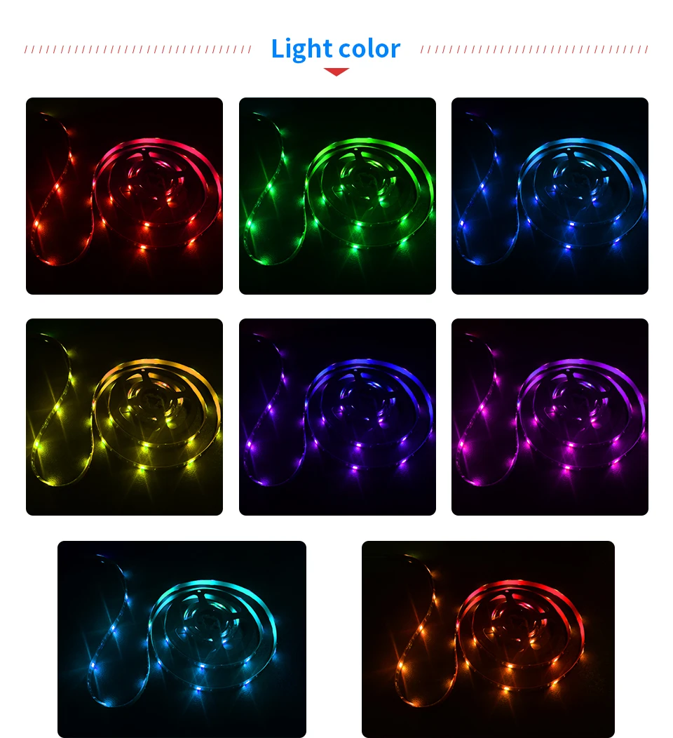 1/2/3/4/5 м, поводок со светодиодными лампочками, цветная (RGB) Светодиодная лента с Bluetooth SMD5050 DC5V 16 шт./м гибкая лента Водонепроницаемый украшение для стен Спальня