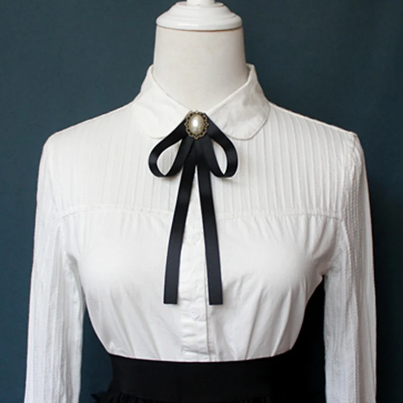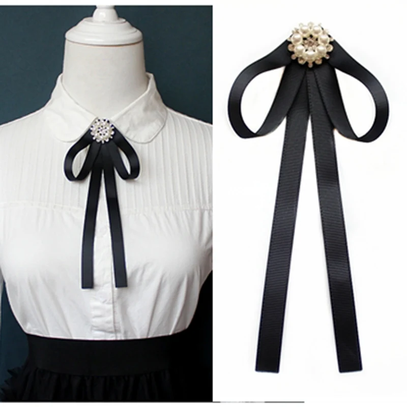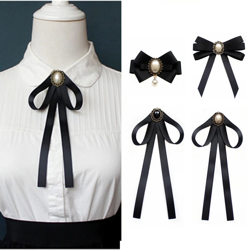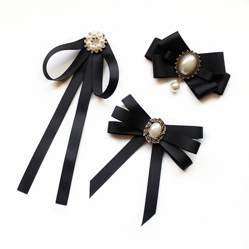 Кружевная лента ручной работы, жемчужная черная брошь для галстука-бабочки для женщин, унисекс, булавка для воротника рубашки, аксессуары для женского костюма