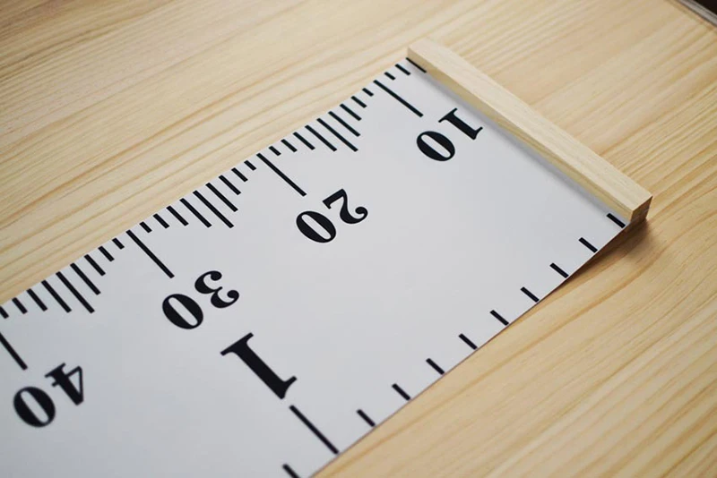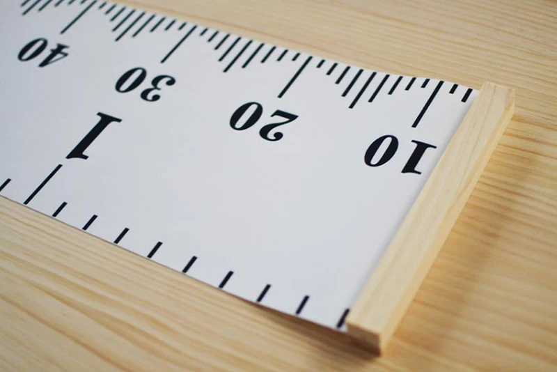 Линейка для измерения высоты холста в деревянной рамке, график рост...