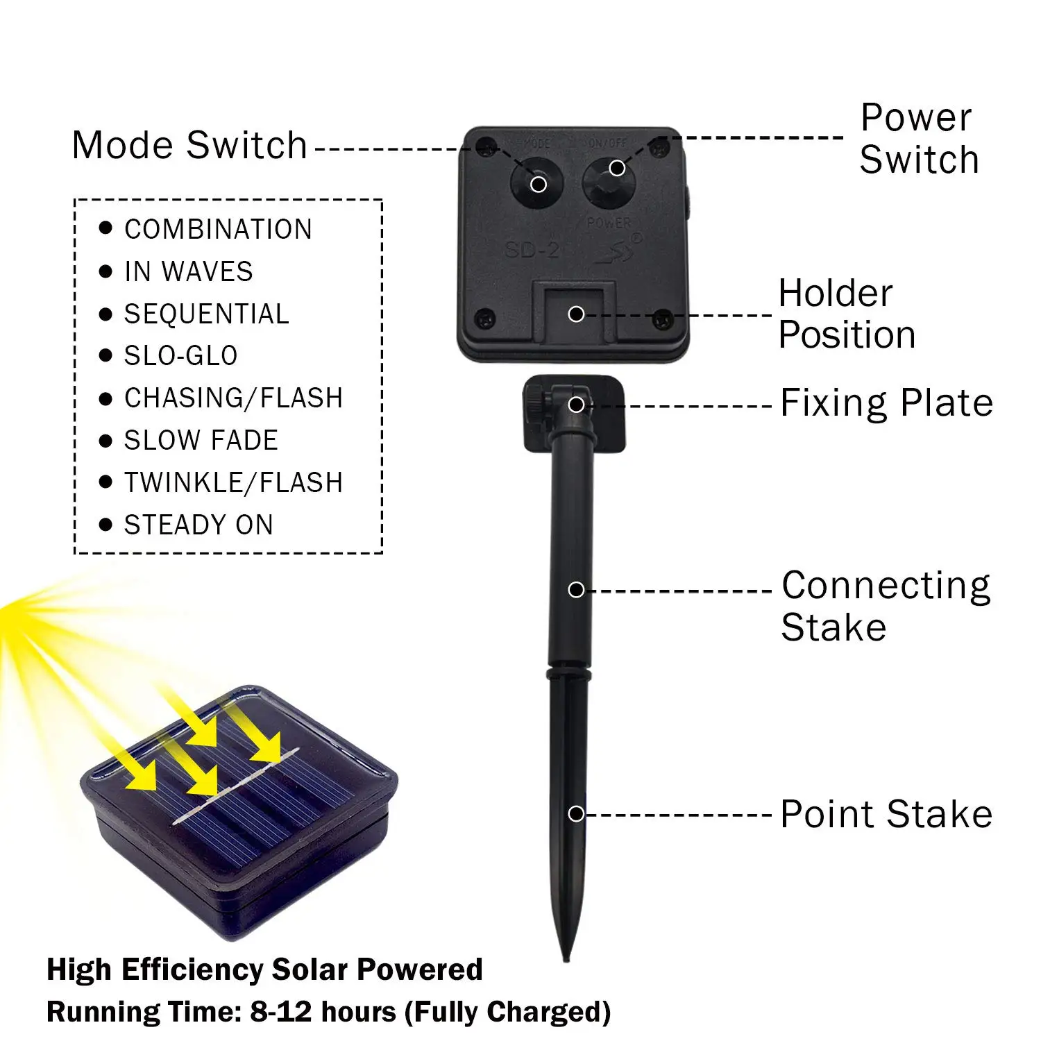 3. Модернизированная солнечная панель: освещение до 10-12 часов после полной зарядки. Две кнопки включения/выключения питания. Авто в сумерках, авто на рассвете.