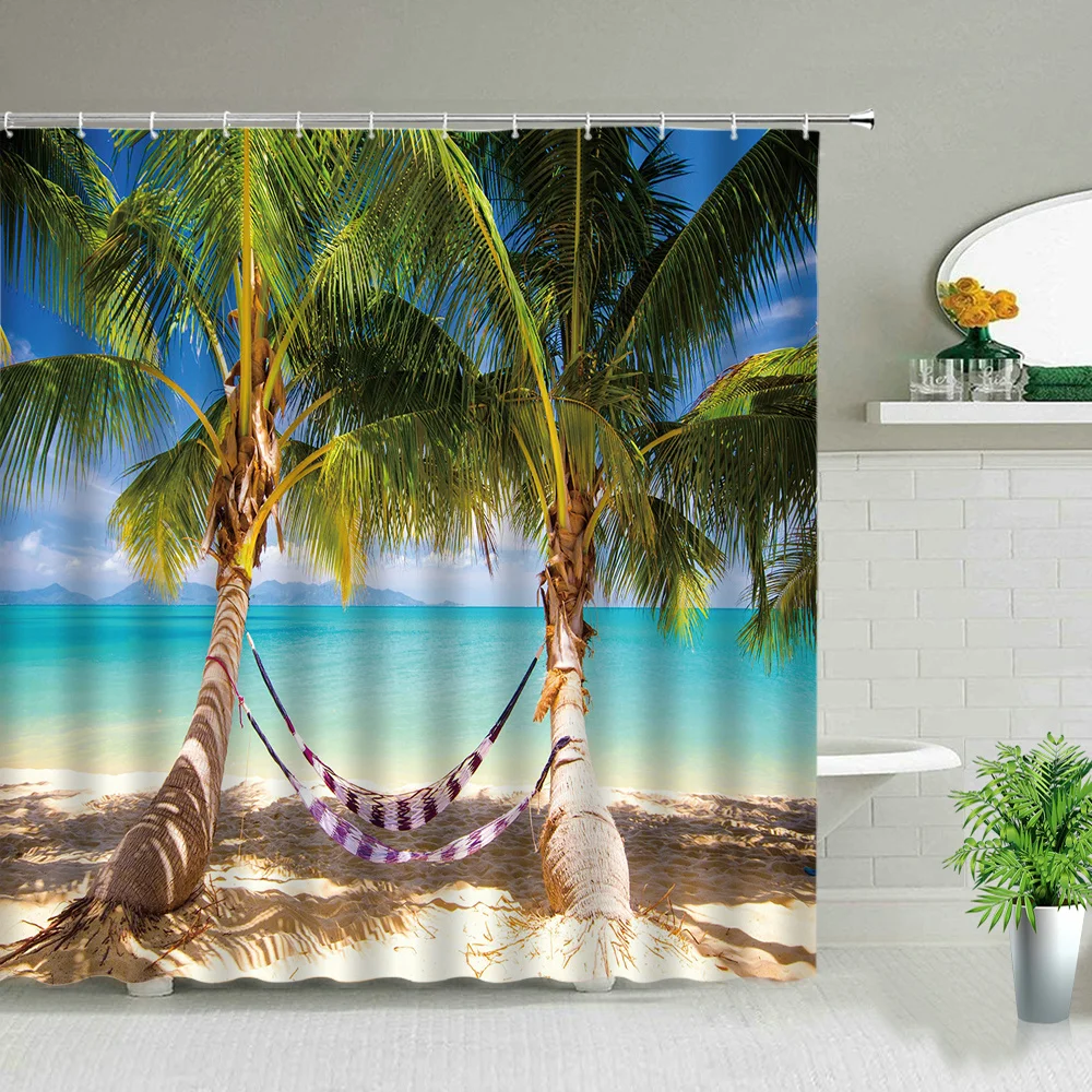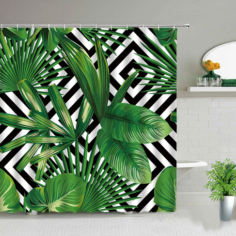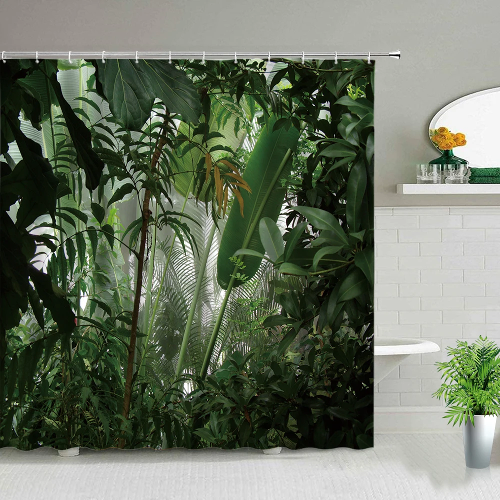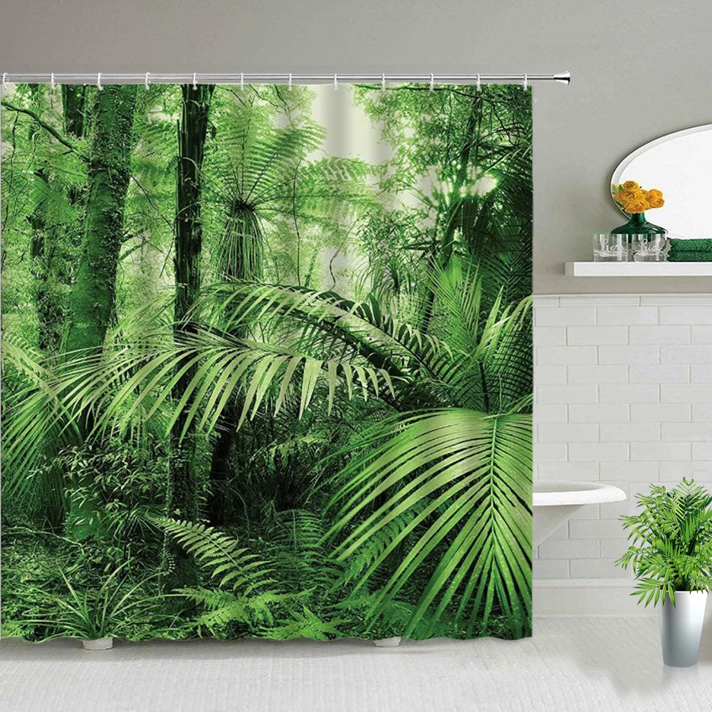 Набор занавесок для душа с тропическими пальмами, декор для ванны с зелеными растениями, джунгли, природы, экзотические растения, водонепроницаемые шторы s