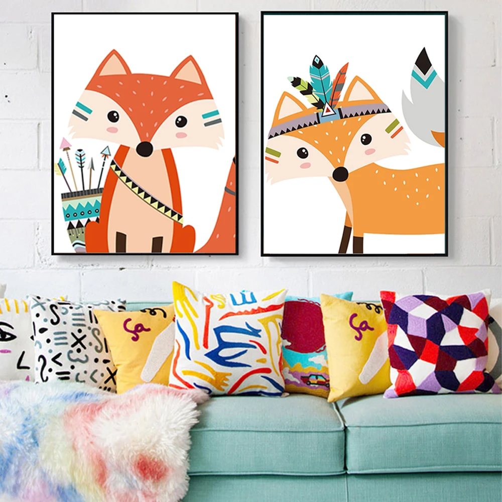Детская комната Холст Картина мультфильм милые животные Детская СТЕНА ДЕКОР лиса постер гостиная спальня домашний Декор без рамки