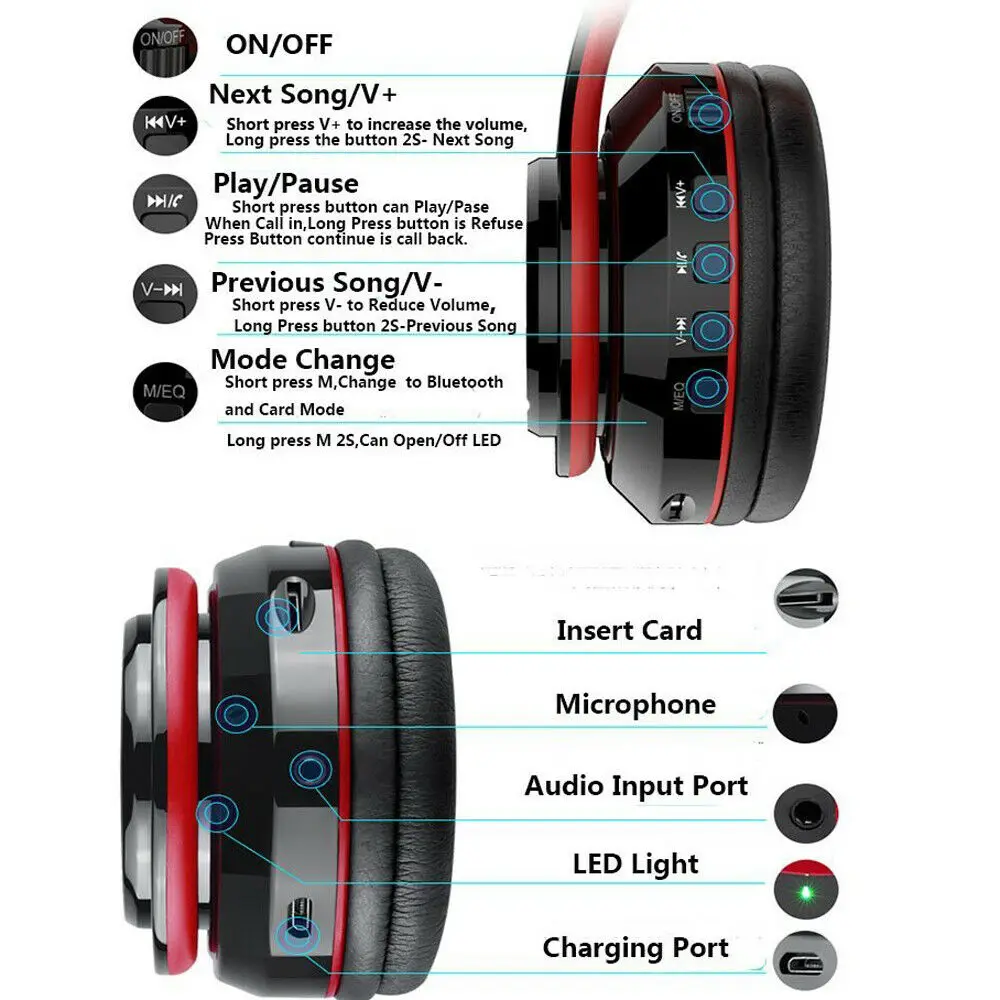 Чип Bluetooth 5,0 обеспечивает более стабильную и быструю передачу.Эргономичный дизайн для комфортного и долгого ношения.Поддержка воспроизведения tf-карт, FM, воспроизведения Bluetooth и принятия/ответа на звонки.Время работы до 8 часов позволяет наслаждаться музыкой дольше и романтичным светодиодный светом.Складной и портативный, легко брать и хранить.Характеристики: