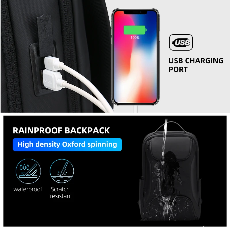 Многофункциональный рюкзак Fenruien для мужчин, модные водонепроницаемые дорожные рюкзаки с USB-зарядкой, школьная сумка, подходит для ноутбука 15,6 дюйма