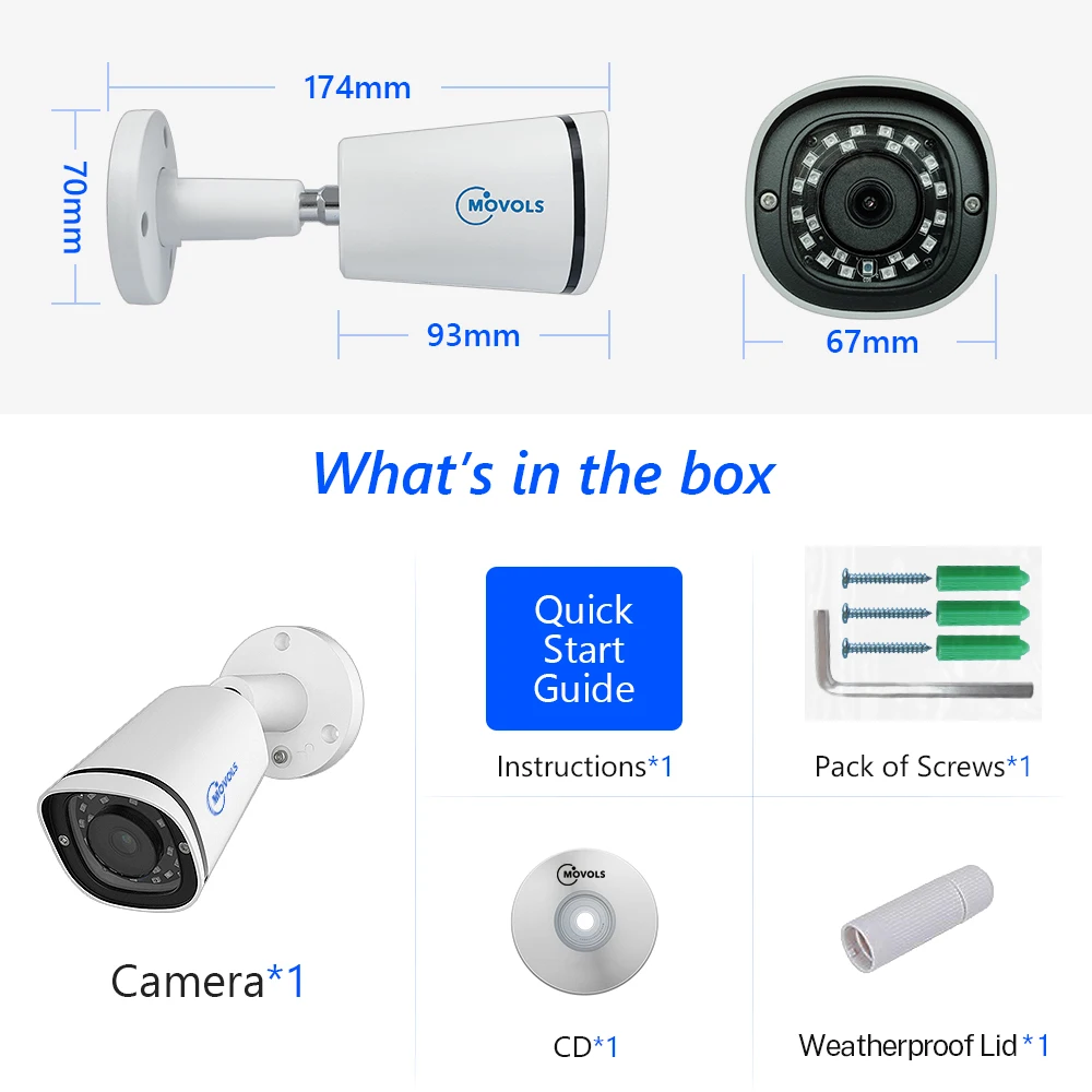 Камера наблюдения MOVOLS имеет прочный алюминиевый корпус и корпус, сВодонепроницаемость IP66. Таким образом, вы можете свободно устанавливать его на открытом воздухе, например, в гараже, на заднем дворе или в любом другом месте. Он может выдерживать суровые погодные условия, включая дождь, снег, сильный холод и тепло.