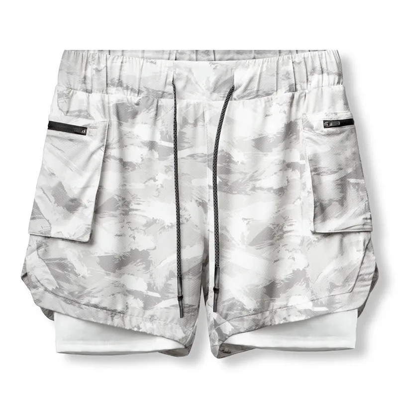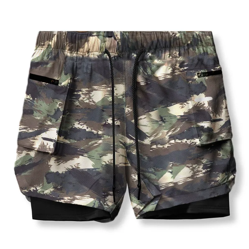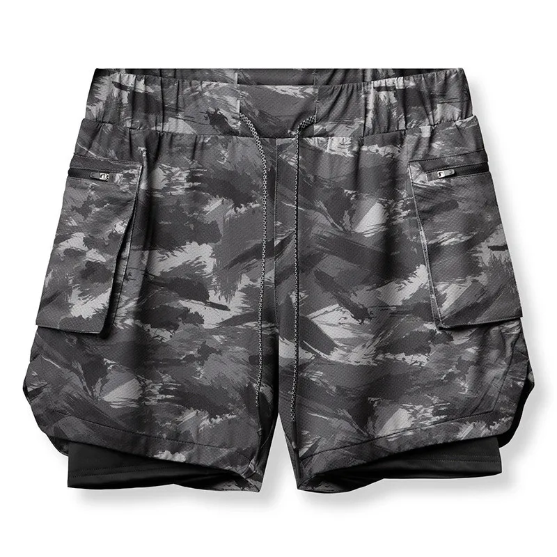 2021 с камуфляжным принтом, шорты для бега, Для мужчин двухслойные брюки быстросохнущая тренажерный зал спортивные шорты Фитнес для тренировки с карманами Спортивные шорты Для мужчин