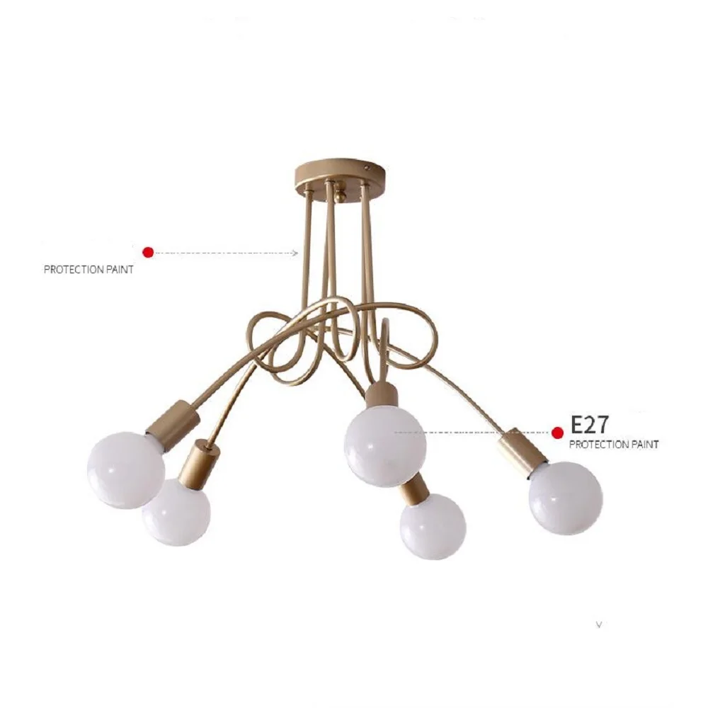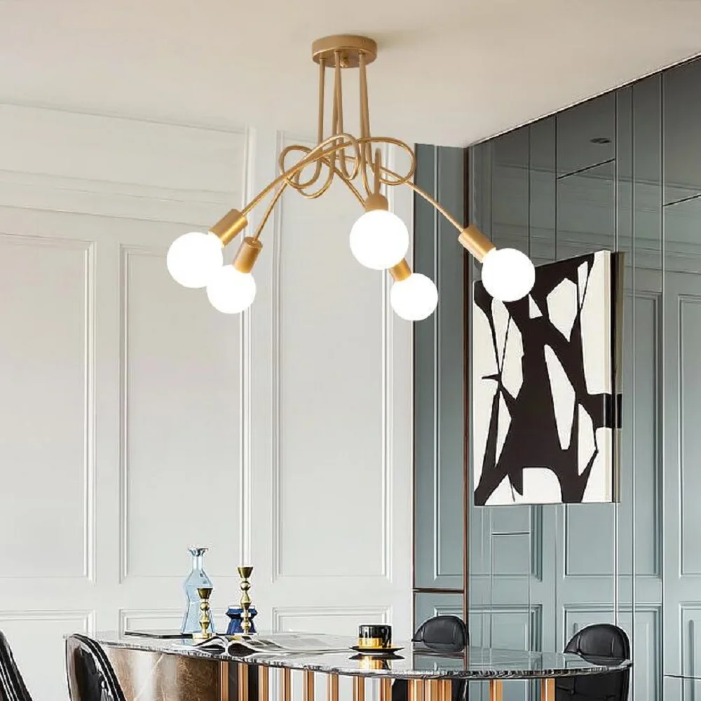 Современные креативные изогнутые люстры из кованого железа, позолоч...