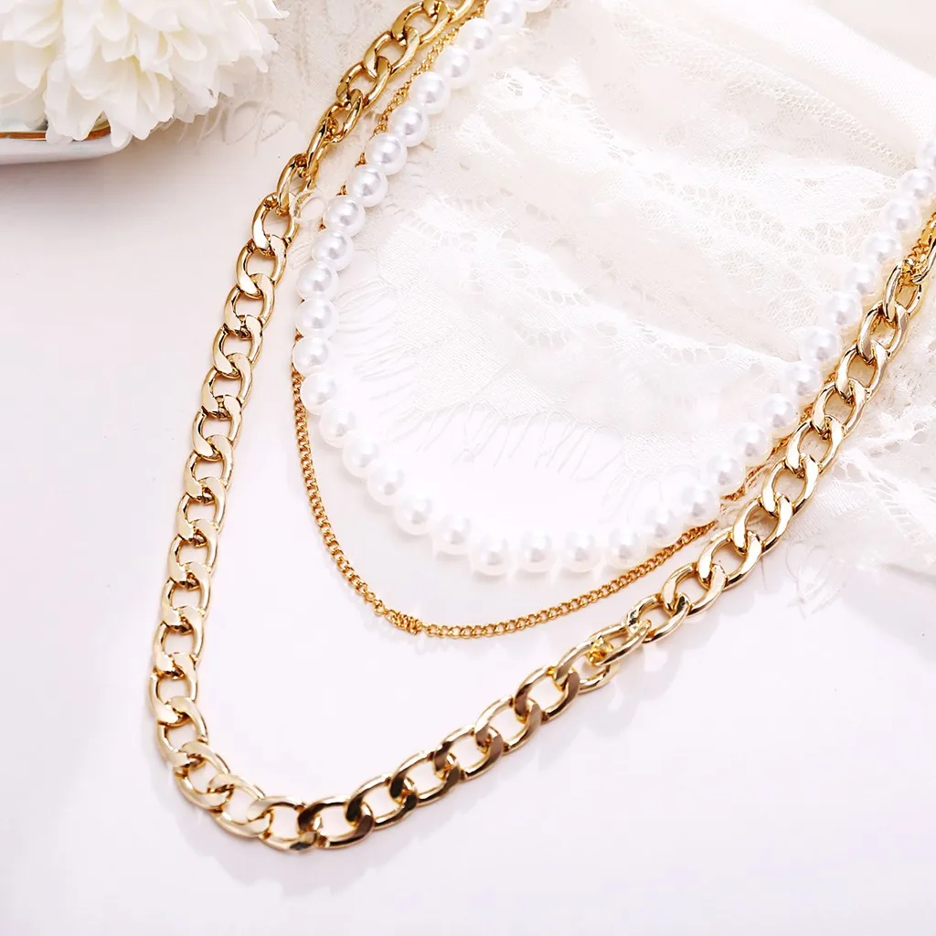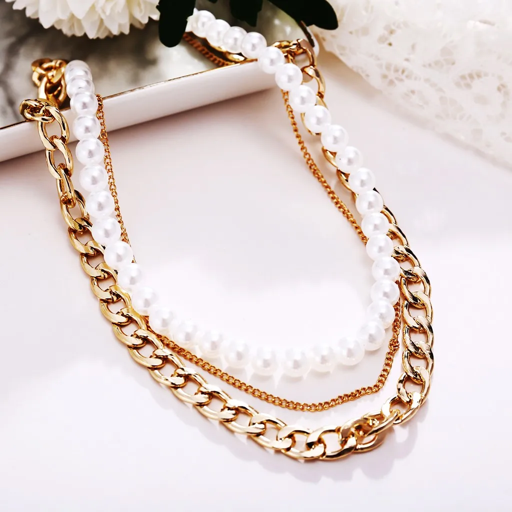 Высококачественные металлические материалы не подвержены выцветанию и аллергии. Ретро Простой и благородный темпераментный стиль. Трехслойная жемчужная цепочка на ключицы подходит для повседневной носки. Подходит в качестве подарка маме или любовнику. Подходит для банкета или повседневной носкиОписание:
