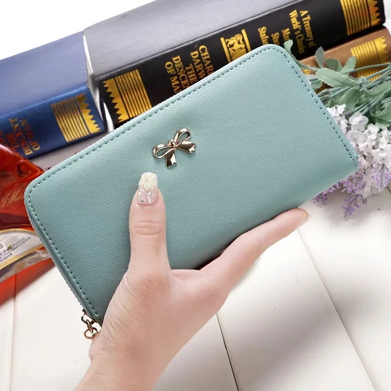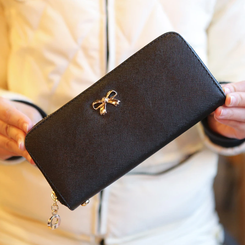 Корейский модный женский длинный кошелек с бантом, 8 цветов, из искусственной кожи, Женский кошелек для монет, держатель для денег, телефона, держатель для карт, клатч на молнии