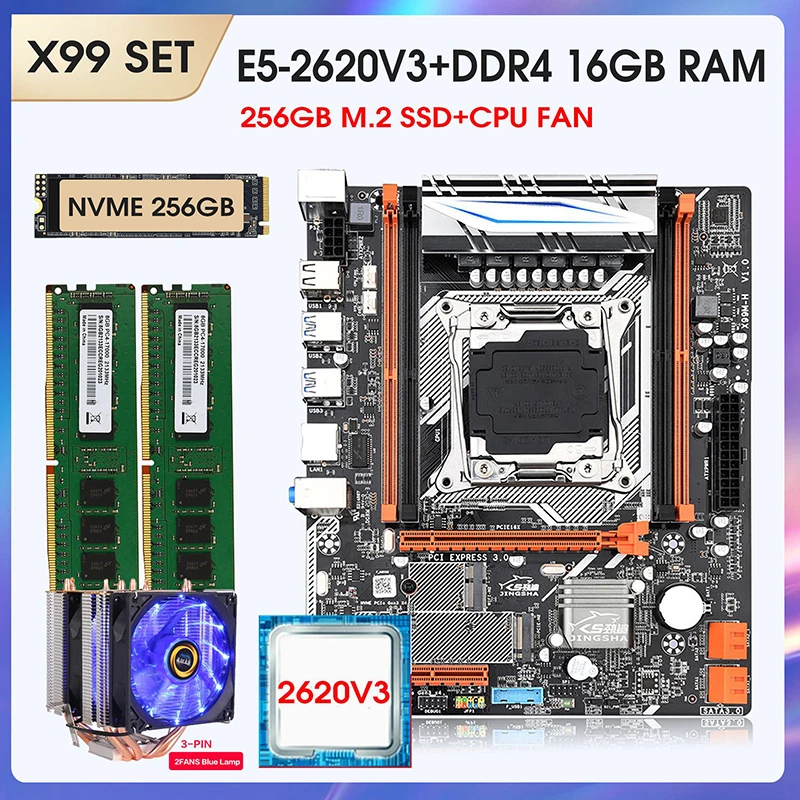 Материнская плата JINGSHA X99, разноцветная, стандартная модель E5 2620 V3, процессор 16 Гб (2*8 ГБ) память ECC REG с NVME 256 ГБ M.2 SSD CPU FAN